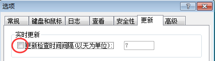 (2)打开后点击:工具-->选项-->更新-->取消前面的更新即可。