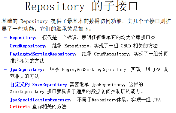 1 package com.atguigu.springdata.test; 2 3 import java.io.FileNotFoundException; 4 import java.io.IOException; 5 import java.sql.SQLException; 6 import java.util.ArrayList; 7 import java.util.Arrays; 8 import java.util.Date; 9 import java.util.List; 10 11 import javax.persistence.criteria.CriteriaBuilder; 12 import javax.persistence.criteria.CriteriaQuery; 13 import javax.persistence.criteria.Path; 14 import javax.persistence.criteria.Predicate; 15 import javax.persistence.criteria.Root; 16 import javax.sql.DataSource; 17 18 import org.junit.Test; 19 import org.springframework.context.ApplicationContext; 20 import org.springframework.context.support.ClassPathXmlApplicationContext; 21 import org.springframework.data.domain.Page; 22 import org.springframework.data.domain.PageRequest; 23 import org.springframework.data.domain.Sort; 24 import org.springframework.data.domain.Sort.Direction; 25 import org.springframework.data.domain.Sort.Order; 26 import org.springframework.data.jpa.domain.Specification; 27 28 import com.atguigu.springdata.Person; 29 import com.atguigu.springdata.PersonRepsotory; 30 import com.atguigu.springdata.PersonService; 31 import com.atguigu.springdata.commonrepositorymethod.AddressRepository; 32 33 public class SpringDataTest { 34 35 private ApplicationContext ctx = null; 36 private PersonRepsotory personRepsotory = null; 37 private PersonService personService; 38 39 { 40 ctx = new ClassPathXmlApplicationContext("applicationContext.xml"); 41 personRepsotory = ctx.getBean(PersonRepsotory.class); 42 personService = ctx.getBean(PersonService.class); 43 } 44 45 46 //使用自定义的方法,需要声明接口,并继承,同时完成实现类,此方法比较少用 47 @Test 48 public void testCustomRepositoryMethod(){ 49 personRepsotory.test(); 50 } 51 52 /** 53 * 目标: 实现带查询条件的分页. id > 5 的条件 54 * 55 * 调用 JpaSpecificationExecutor 的 Page<T> findAll(Specification<T> spec, Pageable pageable); 56 * Specification: 封装了 JPA Criteria 查询的查询条件 57 * Pageable: 封装了请求分页的信息: 例如 pageNo, pageSize, Sort 58 */ 59 //使用继承JpaSpecificationExecutor的方法实现条件查询+分页 60 @Test 61 public void testJpaSpecificationExecutor(){ 62 int pageNo = 3 - 1; 63 int pageSize = 5; 64 PageRequest pageable = new PageRequest(pageNo, pageSize); 65 66 //通常使用 Specification 的匿名内部类 67 Specification<Person> specification = new Specification<Person>() { 68 /** 69 * @param *root: 代表查询的实体类. 70 * @param query: 可以从中可到 Root 对象, 即告知 JPA Criteria 查询要查询哪一个实体类. 还可以 71 * 来添加查询条件, 还可以结合 EntityManager 对象得到最终查询的 TypedQuery 对象. 72 * @param *cb: CriteriaBuilder 对象. 用于创建 Criteria 相关对象的工厂. 当然可以从中获取到 Predicate 对象 73 * @return: *Predicate 类型, 代表一个查询条件. 74 */ 75 @Override 76 public Predicate toPredicate(Root<Person> root, 77 CriteriaQuery<?> query, CriteriaBuilder cb) { 78 Path path = root.get("id"); 79 Predicate predicate = cb.gt(path, 5); 80 return predicate; 81 } 82 }; 83 84 Page<Person> page = personRepsotory.findAll(specification, pageable); 85 86 System.out.println("总记录数: " + page.getTotalElements()); 87 System.out.println("当前第几页: " + (page.getNumber() + 1)); 88 System.out.println("总页数: " + page.getTotalPages()); 89 System.out.println("当前页面的 List: " + page.getContent()); 90 System.out.println("当前页面的记录数: " + page.getNumberOfElements()); 91 } 92 93 //使用继承JpaRepository的方法 94 @Test 95 public void testJpaRepository(){ 96 Person person = new Person(); 97 person.setBirth(new Date()); 98 person.setEmail("xy@atguigu.com"); 99 person.setLastName("xyz"); 100 person.setId(28); 101 102 Person person2 = personRepsotory.saveAndFlush(person); 103 104 System.out.println(person == person2); 105 } 106 107 //使用继承PagingAndSortingRespository的方法,实现分页 108 @Test 109 public void testPagingAndSortingRespository(){ 110 //pageNo 从 0 开始. 111 int pageNo = 6 - 1; 112 int pageSize = 5; 113 //Pageable 接口通常使用的其 PageRequest 实现类. 其中封装了需要分页的信息 114 //排序相关的. Sort 封装了排序的信息 115 //Order 是具体针对于某一个属性进行升序还是降序. 116 Order order1 = new Order(Direction.DESC, "id"); 117 Order order2 = new Order(Direction.ASC, "email"); 118 Sort sort = new Sort(order1, order2); 119 120 PageRequest pageable = new PageRequest(pageNo, pageSize, sort); 121 Page<Person> page = personRepsotory.findAll(pageable); 122 123 System.out.println("总记录数: " + page.getTotalElements()); 124 System.out.println("当前第几页: " + (page.getNumber() + 1)); 125 System.out.println("总页数: " + page.getTotalPages()); 126 System.out.println("当前页面的 List: " + page.getContent()); 127 System.out.println("当前页面的记录数: " + page.getNumberOfElements()); 128 } 129 130 //使用继承CrudReposiory的方法 131 @Test 132 public void testCrudReposiory(){ 133 List<Person> persons = new ArrayList<>(); 134 135 for(int i = 'a'; i <= 'z'; i++){ 136 Person person = new Person(); 137 person.setAddressId(i + 1); 138 person.setBirth(new Date()); 139 person.setEmail((char)i + "" + (char)i + "@atguigu.com"); 140 person.setLastName((char)i + "" + (char)i); 141 142 persons.add(person); 143 } 144 145 personService.savePersons(persons); 146 } 147 148 @Test 149 public void testModifying(){ 150 // personRepsotory.updatePersonEmail(1, "mmmm@atguigu.com"); 151 personService.updatePersonEmail("mmmm@atguigu.com", 1); 152 } 153 154 //设置 nativeQuery=true 即可以使用原生的 SQL 查询 155 @Test 156 public void testNativeQuery(){ 157 long count = personRepsotory.getTotalCount(); 158 System.out.println(count); 159 } 160 161 162 //使用 @Query 几种传递参数的方式 163 @Test 164 public void testQueryAnnotationLikeParam(){ 16