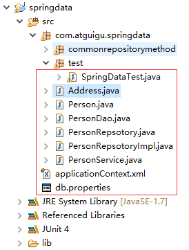 1 package com.atguigu.springdata; 2 3 import javax.persistence.EntityManager; 4 import javax.persistence.PersistenceContext; 5 6 public class PersonRepsotoryImpl implements PersonDao { 7 8 @PersistenceContext 9 private EntityManager entityManager; 10 11 @Override 12 public void test() { 13 Person person = entityManager.find(Person.class, 11); 14 System.out.println("-->" + person); 15 } 16 17 }
