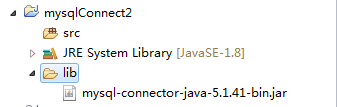 1. 在工程目录中创建lib文件夹,将下载好的JDBC(jar包)放到该文件夹下,如下图所示: