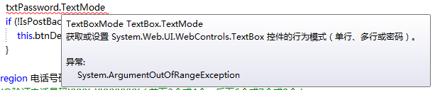iiii. 将鼠标移到txtPassword后面的TextMode上面,发现TextMode是TextBoxMode类型的,顺藤摸瓜