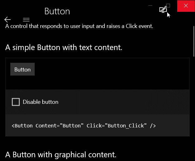 1 <Grid helper:TransitionsHelper.Background="{ThemeResource ApplicationPageBackgroundThemeBrush}"> 2 <Button x:Name="ToggleTheme" Click="ToggleTheme_Click">ToggleTheme</Button> 3 </Grid>