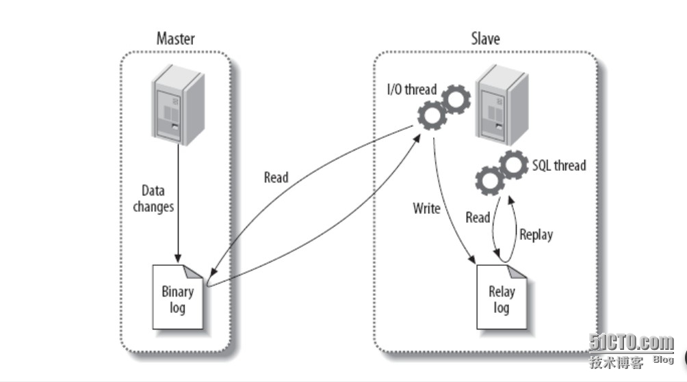 mysql复制的原理现阶段都是一样的,master将操作记录到bin-log中,slave的一个线程去master读取bin-log,并将他们保存到relay-log中,slave的另外一个线程去重放relay-log中的操作来实现和master数据同步。