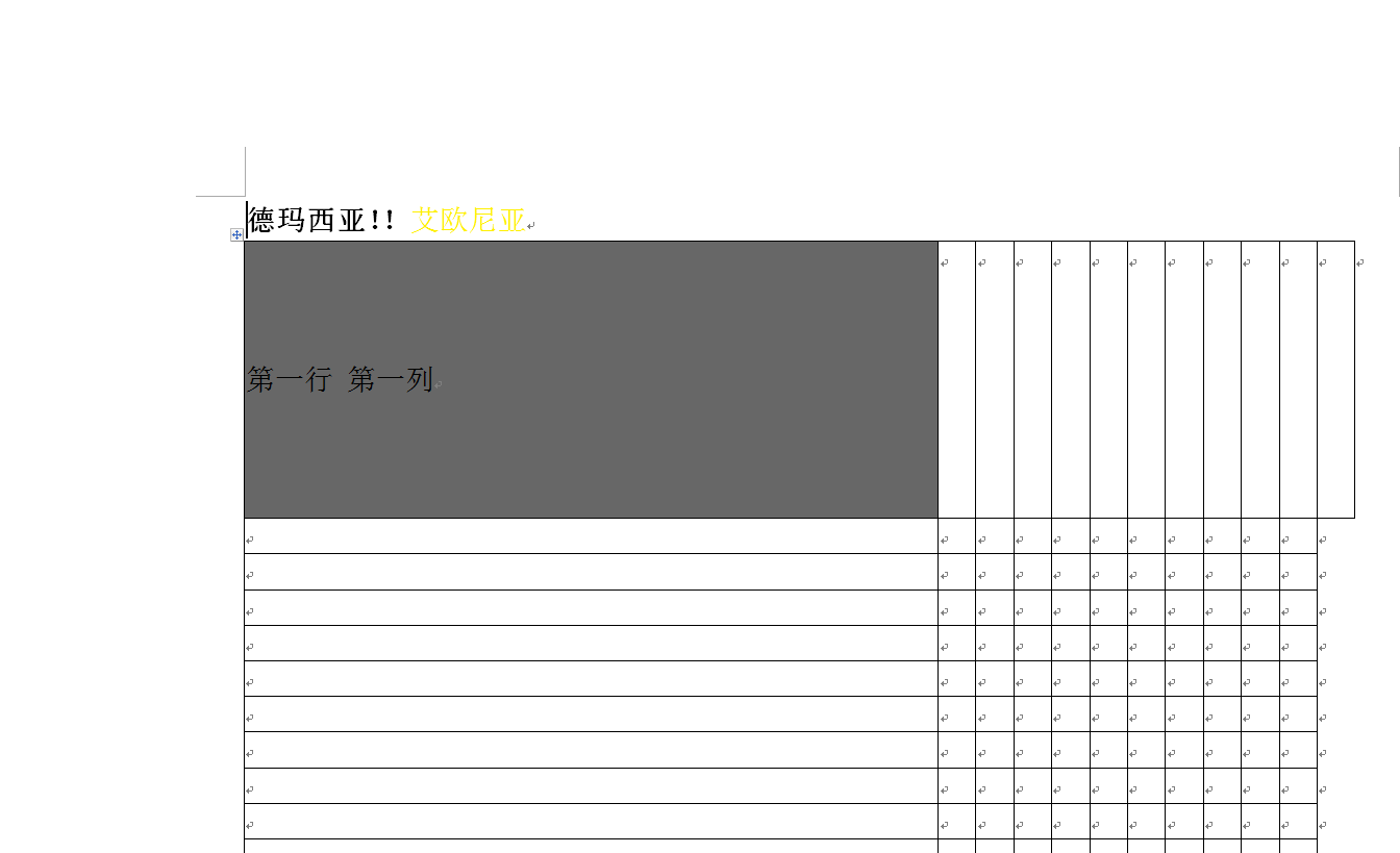 1 package com.it.WordTest; 2 3 import java.io.FileNotFoundException; 4 import java.io.FileOutputStream; 5 import java.io.IOException; 6 import java.math.BigInteger; 7 import java.util.List; 8 9 import org.apache.poi.xwpf.usermodel.XWPFDocument; 10 import org.apache.poi.xwpf.usermodel.XWPFParagraph; 11 import org.apache.poi.xwpf.usermodel.XWPFRun; 12 import org.apache.poi.xwpf.usermodel.XWPFTable; 13 import org.apache.poi.xwpf.usermodel.XWPFTableCell; 14 import org.apache.poi.xwpf.usermodel.XWPFTableRow; 15 import org.openxmlformats.schemas.wordprocessingml.x2006.main.CTPPr; 16 import org.openxmlformats.schemas.wordprocessingml.x2006.main.CTTblPr; 17 import org.openxmlformats.schemas.wordprocessingml.x2006.main.CTTblWidth; 18 import org.openxmlformats.schemas.wordprocessingml.x2006.main.CTTcPr; 19 import org.openxmlformats.schemas.wordprocessingml.x2006.main.CTTrPr; 20 import org.openxmlformats.schemas.wordprocessingml.x2006.main.STVerticalJc; 21 22 public class WriteWord { 23 24 public static void writeXWPFDocument(){ 25 26 try { 27 //创建一个word文档 28 XWPFDocument xwpfDocument = new XWPFDocument(); 29 FileOutputStream outputStream = new FileOutputStream("F:/test/word1.docx"); 30 /** 31 * 创建一个段落 32 */ 33 XWPFParagraph paragraph = xwpfDocument.createParagraph(); 34 XWPFRun run = paragraph.createRun(); 35 run.setText("德玛西亚!!"); 36 //加粗 37 run.setBold(true); 38 39 run = paragraph.createRun(); 40 run.setText("艾欧尼亚"); 41 run.setColor("fff000"); 42 43 44 /** 45 * 创建一个table 46 */ 47 //创建一个10行10列的表格 48 XWPFTable table =xwpfDocument.createTable(10, 10); 49 //添加新的一列 50 table.addNewCol(); 51 //添加新的一行 52 table.createRow(); 53 //获取表格属性 54 CTTblPr tablePr = table.getCTTbl().addNewTblPr(); 55 //获取表格宽度 56 CTTblWidth tableWidth = tablePr.addNewTblW(); 57 //设置表格的宽度大小 58 tableWidth.setW(BigInteger.valueOf(8000)); 59 60 /** 61 * 获取表格中的行 以及设计行样式 62 */ 63 //获取表格中的所有行 64 List<XWPFTableRow> rowList = table.getRows(); 65 XWPFTableRow row; 66 row = rowList.get(0); 67 row.setHeight(2000); 68 //为这一行增加一列 69 row.addNewTableCell(); 70 //获取行属性 71 CTTrPr rowPr = row.getCtRow().addNewTrPr(); 72 row.getCtRow(); 73 74 /** 75 * 获取表格中的列 以及设计列样式 76 */ 77 //获取某个单元格 78 XWPFTableCell cell ; 79 cell = row.getCell(0); 80 cell.setText("第一行\r\n第一列"); 81 //单元格背景颜色 82 cell.setColor("676767"); 83 //获取单元格样式 84 CTTcPr cellPr = cell.getCTTc().addNewTcPr(); 85 //表格内容垂直居中 86 cellPr.addNewVAlign().setVal(STVerticalJc.CENTER); 87 //设置单元格的宽度 88 cellPr.addNewTcW().setW(BigInteger.valueOf(5000)); 89 90 91 xwpfDocument.write(outputStream); 92 outputStream.close(); 93 94 } catch (FileNotFoundException e) { 95 e.printStackTrace(); 96 } catch (IOException e) { 97 e.printStackTrace(); 98 } 99 } 100 public static void main(String[] args) { 101 writeXWPFDocument(); 102 } 103 }