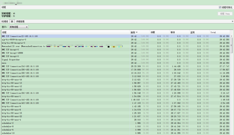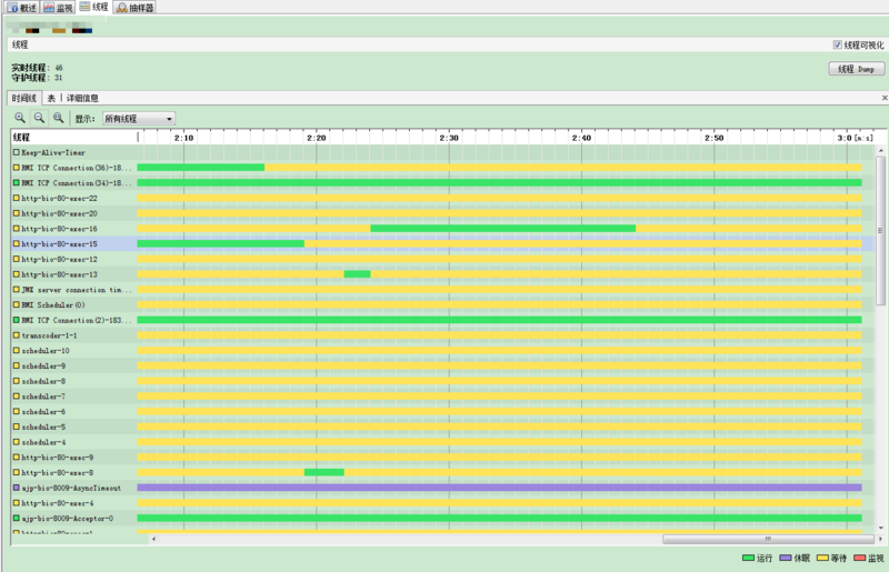 可以查看线程工作的饱和度,感觉像是老板在看员工的工时一样的爽。