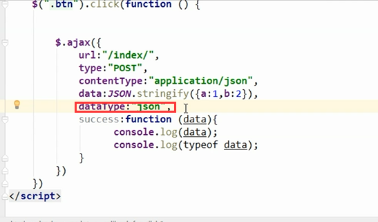 如果我这里写了datatype:json,那么success函数中的data就直接就是一个对象,不是字符串,不需要我们在JSON.parser进行反序列化处理