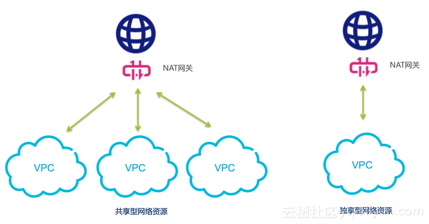 现有阿里云中的NAT网关,只能为所挂载的VPC提供公网访问服务。而在云企业网中,通过设置某NAT网关作为公网出口,云企业