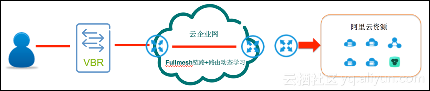 云企业网打造的是一张能够实现阿里云全球网资源及接入阿里云的网络资源全互连的骨干网络。全网通过地址唯一性管理,避免地址冲突问题。用户不需要额外配置,网络通过控制器实现多节点,多级路由的自动转发与学习,实现全网的路由快速收敛。