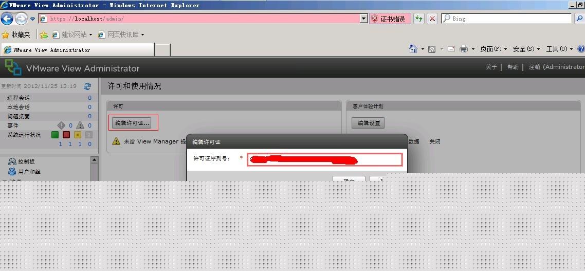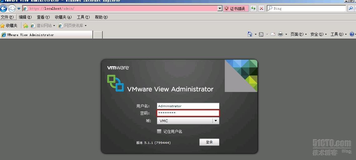 打开View Admin管理界面(由于是基于Flash界面,这里需要安装FLash插件),使用域管理员登陆(可能会提示证书错误,这里的证书将在进阶篇中会讲到如何解决):