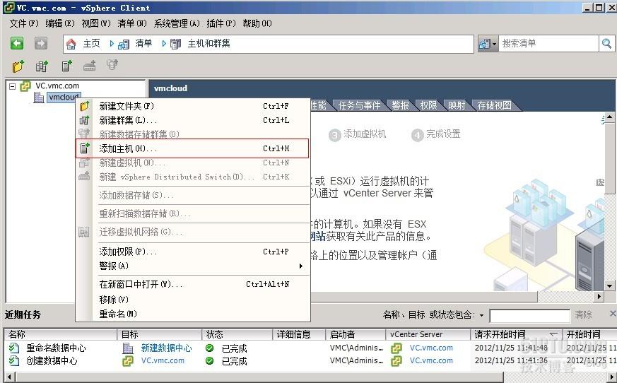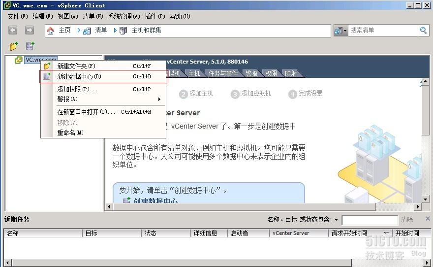 连接到我们的VC界面后右键属性点击“新建数据中心”,我们添加一个搭载view的数据中心:
