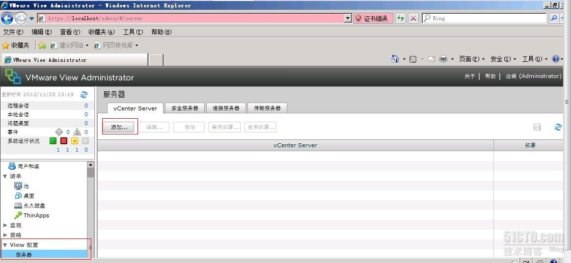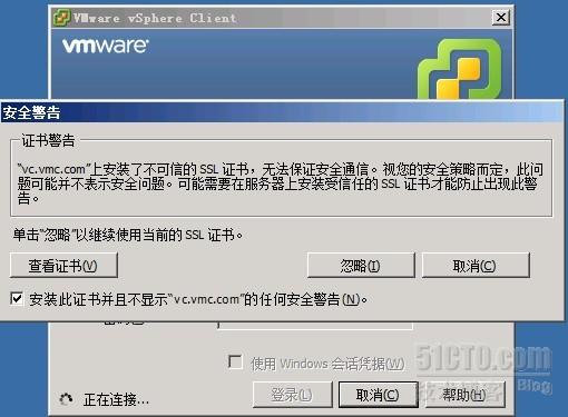 将vc添加到connection server中(可能会提示证书不受信任,点击查看证书并将其接受即可,关于证书部分将在进阶篇详述):