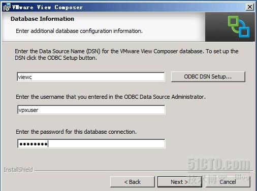 接下来正式view composer的安装,虽然view composer 3(前个版本为2.7)可以不须跟vCenter Server装在一起了,这里我们还是使用VC安装View Composer,同样在vc添加view composer的ODBC: