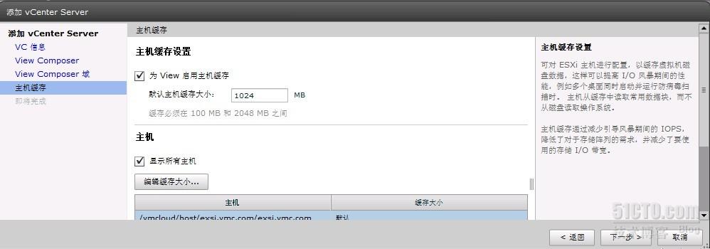 这里是vSphere5.1的特性,有主机缓存机制,我们选择启用:
