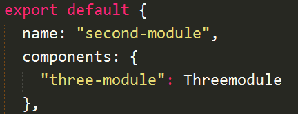 在父组件Second-module中调用、注册、引用进来子组件Three-module: