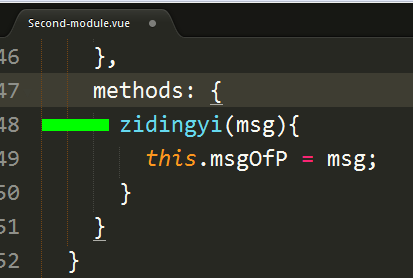 第十步:深明大义的父组件,早在methods中定义好了要修改的逻辑,将要修改的值等于函数带来的参数值(也就是自定义事件捎来的子组件中定义的值)