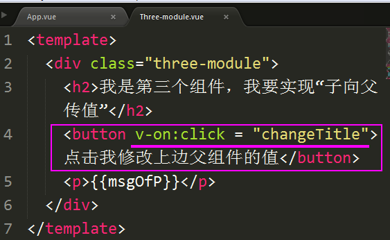 <three-module v-bind:msgOfP = "msgOfP" v-on:titleChanged = "zidingyi($event)"></three-module>