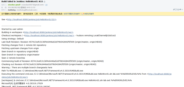 当完成一次构建后,系统将发送详细的构建信息,如下图。