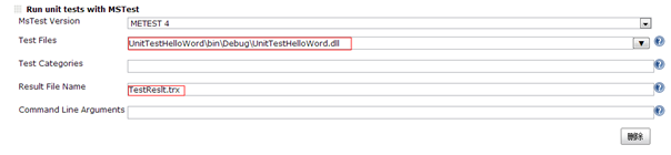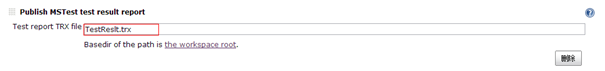 添加相关配置,测试文件为我们测试项目所生成的dll或者exe文件。测试结果文件为MSTest.exe所产生的测试结果文件,文件后缀为trx。注意:这里文件是相对路径,相对于项目的路径。
