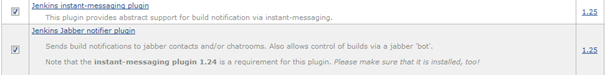 为了能上Jenkins能使用Jabber服务,还需安装下图所显示的两个插件。