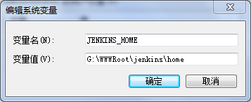 添加环境变量JENKINS_HOME,该变量为jenkins系统的工作目录,如下图:
