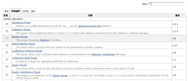Jenkins是一个可扩展的系统,其很多功能都利益于各式各样的插件,现Jenkins中已有超过200个各种不同功能的插件。所以插件对于Jenkins是非常重要的。