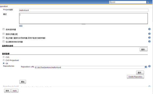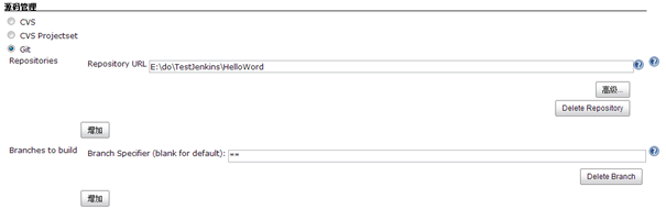为了能完成一次基本的构建,至少需要做如下设置,在源码管理选项,选择源代码管理工具。
