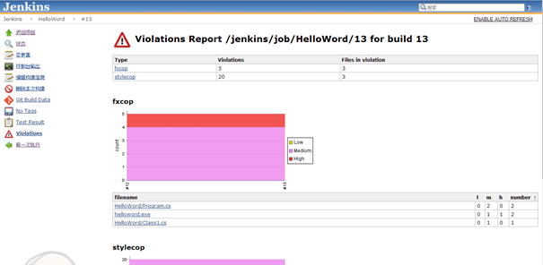 Jenkins Violations plugin:该插件主要用来展示各种分析工具所产生的结果。