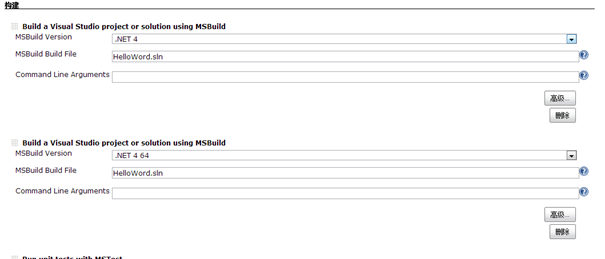 点击增加构建,选择前面安装的MSBuild,将构建文件设置为项目文件,如下图: