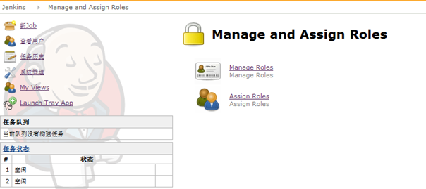 配置完成后在"系统管理"下新增选项"Manage and Assign Roles"。点击"管理用户"新建账户后即可进行账户,群组的安全策略配置。