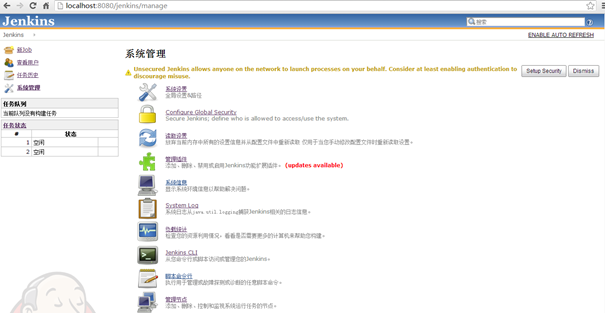 直接运行java –jar Jenkins.war,在浏览器中输入 http://localhost:8080即可。