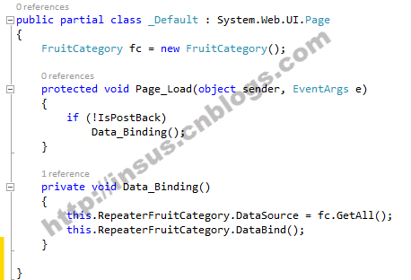 在xxx.aspx.cs中,对Repeater控件数据绑定: