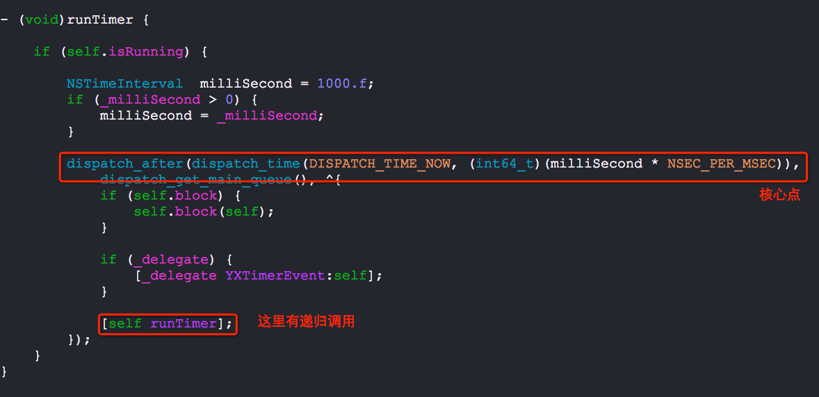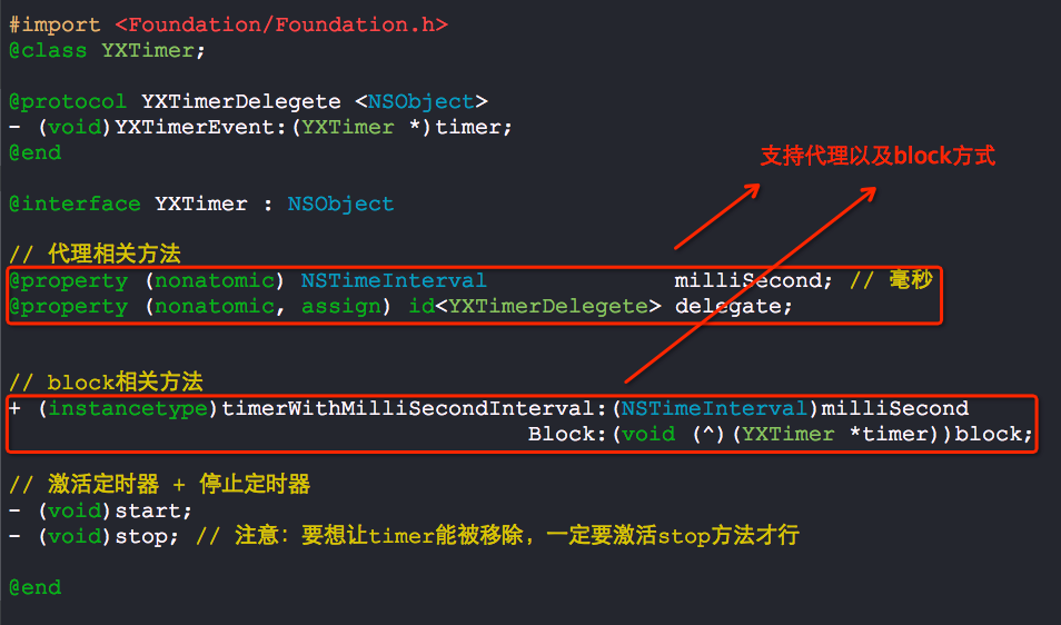 本人根据dispatch_after封装了一个定时器,支持block以及代理的方式来激活定时器,适用于对精度要求低,耗时短的地方,高端大气上档次,低调奢华有内涵:)