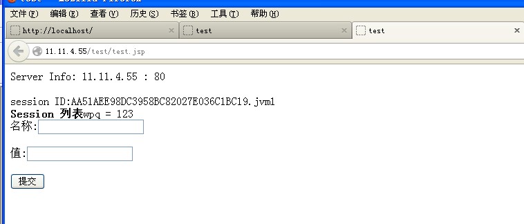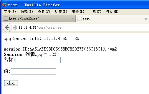 在当前浏览器下在开一个窗口,并在地址上输入:http://11.11.4.55/test/test.jsp,效果如下: