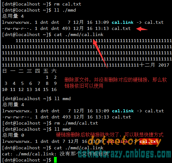 比较有意思的是,只删除原文件,并没有删除对应的硬链接,软链接依然可以使用(不会像Win里面找不到目标啥的)