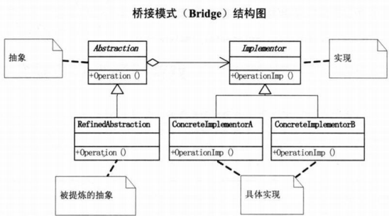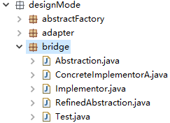 package designMode.bridge; class ConcreteImplementorA implements Implementor{ @Override public void operation() { System.out.println("具体实现A的方法执行"); } } class ConcreteImplementorB implements Implementor{ @Override public void operation() { System.out.println("具体实现B的方法执行"); } }