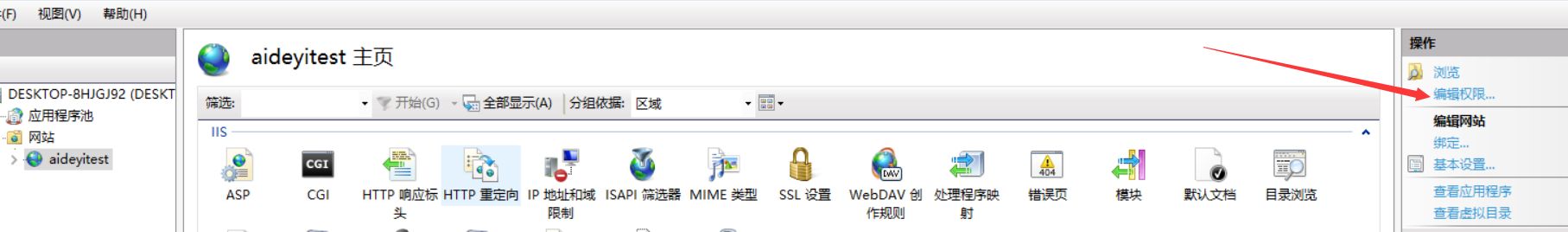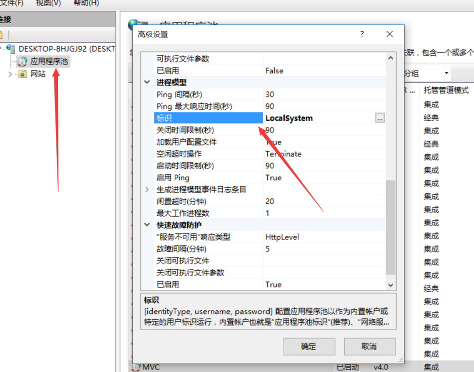 点击应用程序池,选择该网站的应用程序池,然后右键-->高级设置,选择标识为LocalSystem
