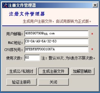 通过“注册文件管理器”,我们就可以根据用户提供的信息来生成软件的注册文件。