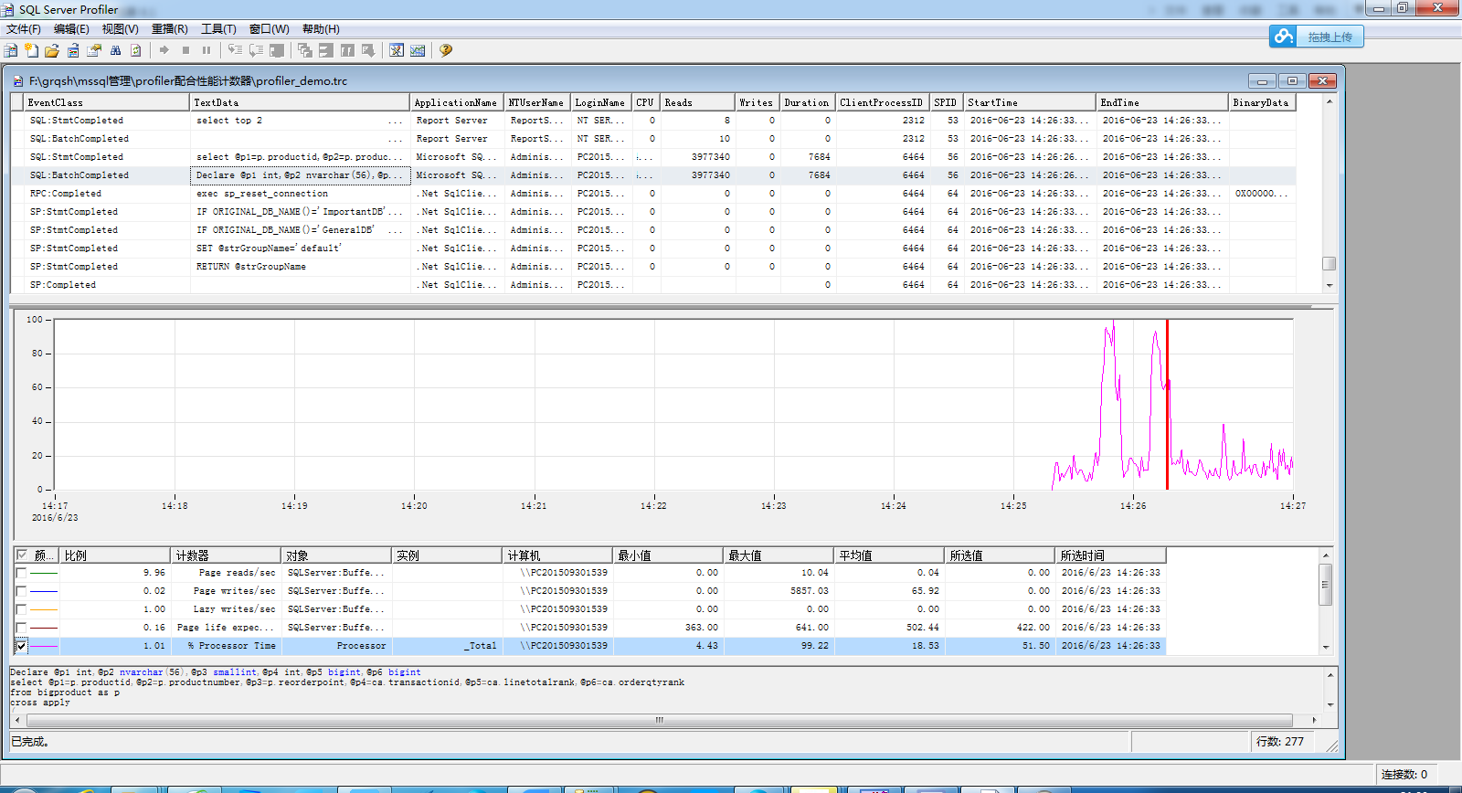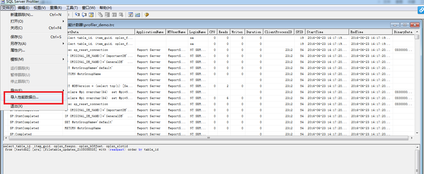 跳过前两步(计数器和profiler)的收集,我已经准备好了两份文件,(sql server profiler文件和性能监控的文件)