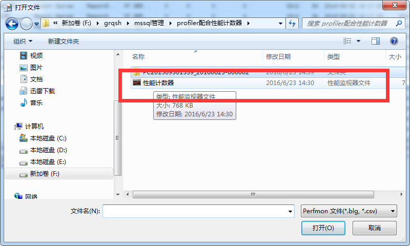 选择之前收集的windows性能计数器文件