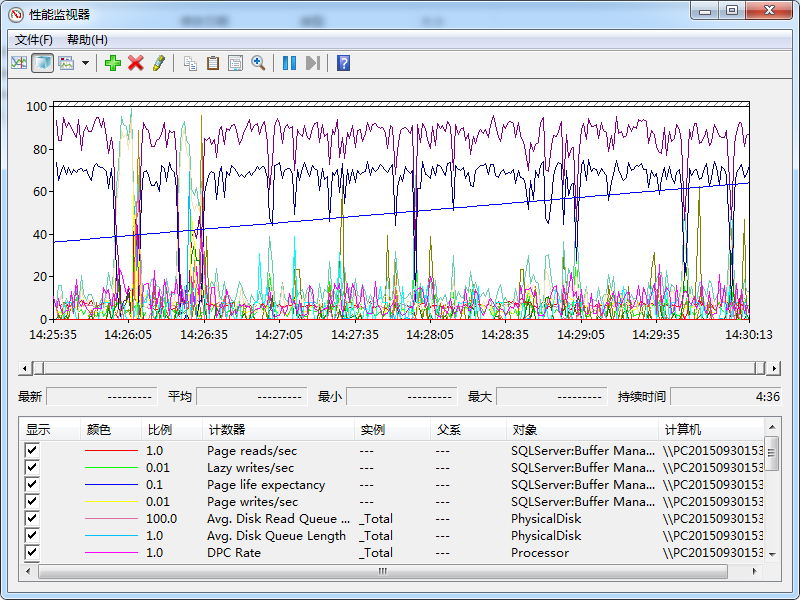 通过计数器可以收集两部分内容:WINDOWS 的运行指标,和SQL Server的指标。比如:服务器的CPU使用率、磁盘队列、内存情况、锁的情况等等。