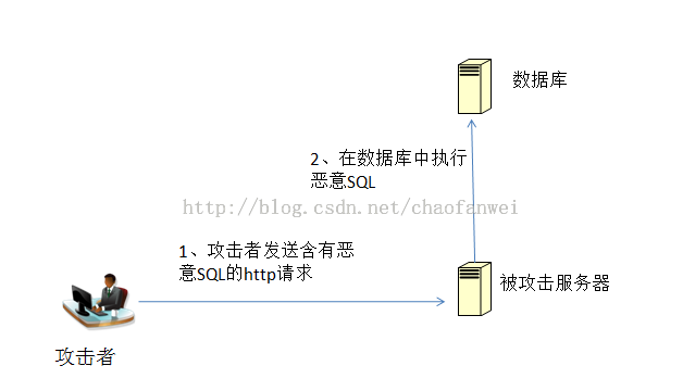 注入攻击主要有两种形式,SQL注入攻击和OS注入攻击。SQL注入攻击的原理如下图所示。攻击者在HTTP请求中注入恶意的SQL命令,服务器用请求构造数据库SQL命令时,恶意SQL被一起构造,并在数据库中运行。
