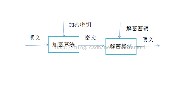 非对称加密使用的加密和解密不是同一密钥,其中一个对外界公开,被成为公钥,另一个只有所有者知道,被称作私钥。用公钥加密的信息必须用私钥才能解开,反正,用私钥加密的信息只有用公钥才能解开,如下图所示: