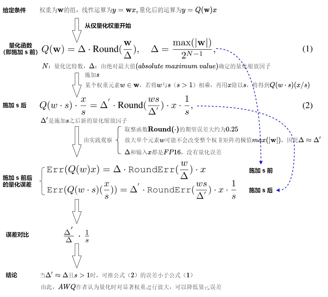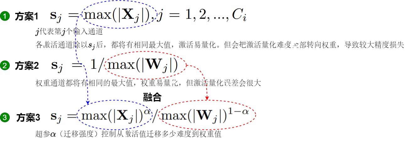 - 平滑因子的作用是建立一个数学上等效的变换,即将input的动态范围除上scale(该scale > 1)即可以实现动态范围减小,从而改善量化结果,然后将该scale吸到下一层的weight内;