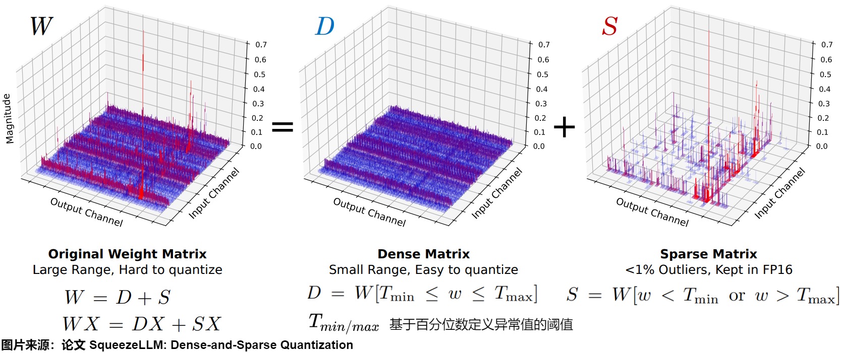 - 根据输入通道内的离群值分布将激活和权重分成离群值和普通值两个不同的部分。包含激活值和权重的异常数据的通道以FP16格式存储,其他通道则以INT8格式存储。后续会对每个向量内积使用不同的归一化常数。