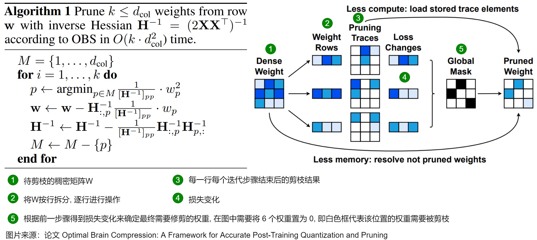 Frantar, Elias, and Dan Alistarh. “Optimal brain compression: A framework for accurate post-training quantization and pruning.” Advances in Neural Information Processing Systems 35 (2022): 4475-4488.