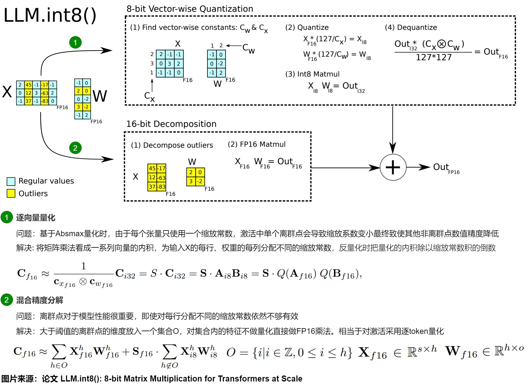 基于以上思考,论文提出了一个两步量化方法 LLM.int8()。