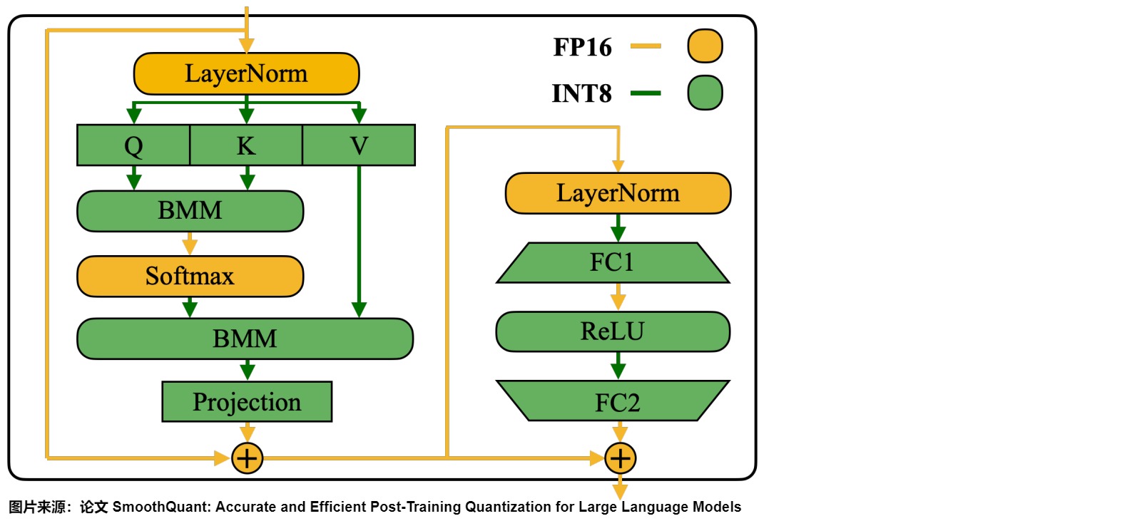 SmoothQuant由论文“SmoothQuant: Accurate and Efficient Post-Training Quantization for Large Language Models”给出,其量化位宽为 W8A8,即权重和激活都是用 8bit 量化。