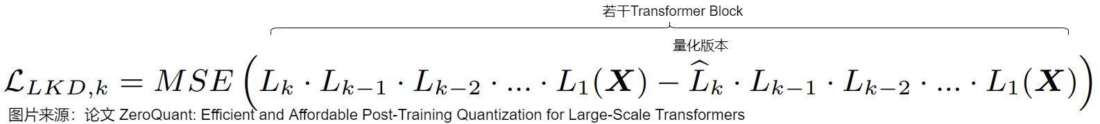 为了解决这些限制,ZeroQuant 提出了逐层蒸馏(LKD)算法缓解精度损失。该算法将原始模型作为教师模型,量化后的模型作为学生模型,通过逐层传递知识的方式,引导学生模型模仿教师模型的输出。这种方法不需要原始训练数据,且能够在不增加额外计算成本的情况下,有效提升量化模型的精度。