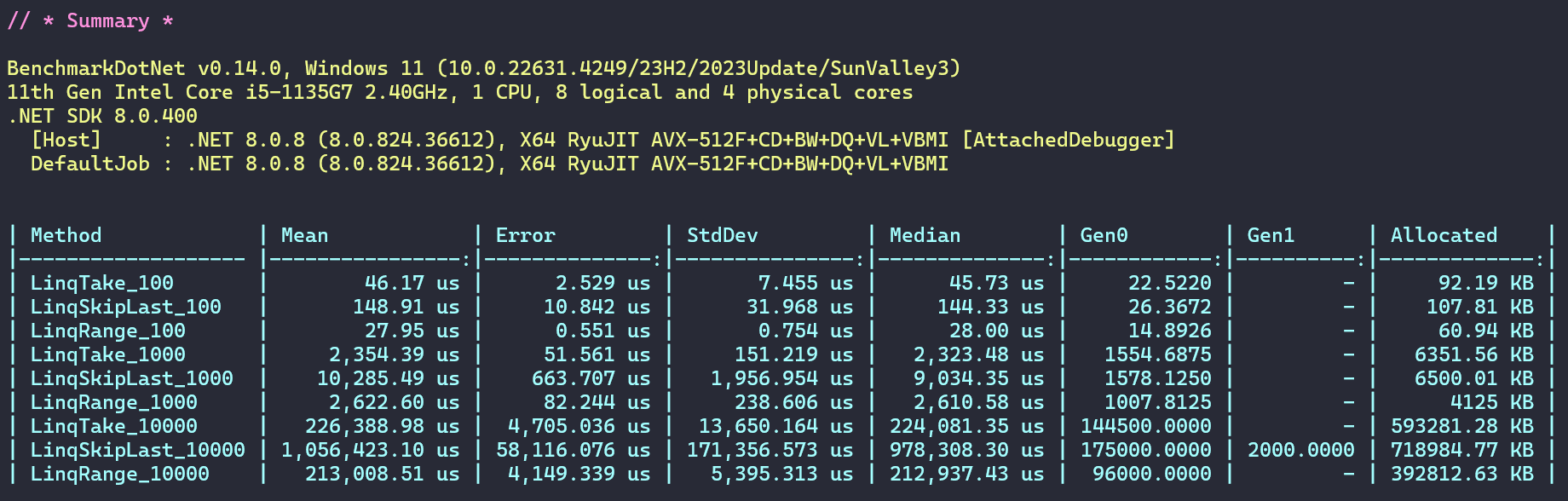 SkipLast方法是从C# 8才开始有的,其作用是返回集合排除最后指定个数的元素外的所有元素。