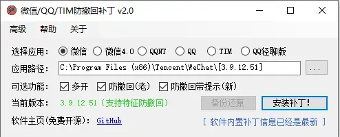 一款 .NET 开源、免费的适用于 Windows 下 PC 版微信/QQ/TIM的防撤回补丁(我已经看到了,撤回也没用了)!!